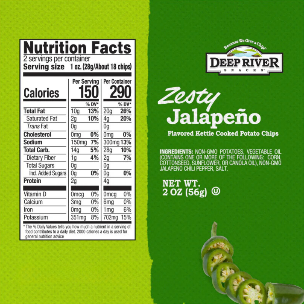 - Four-alarm kick with only four ingredients! Impossibly simple and incredibly delicious, our Zesty Jalapeño kettle cooked chips are the perfect balance of flavor and fire.